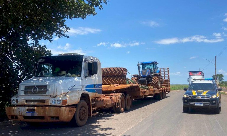 A Polícia Rodoviária Federal (PRF) apreendeu uma carreta com placas adulteradas, na manhã desta segunda-feira (11), em Nova Andradina (MS).
