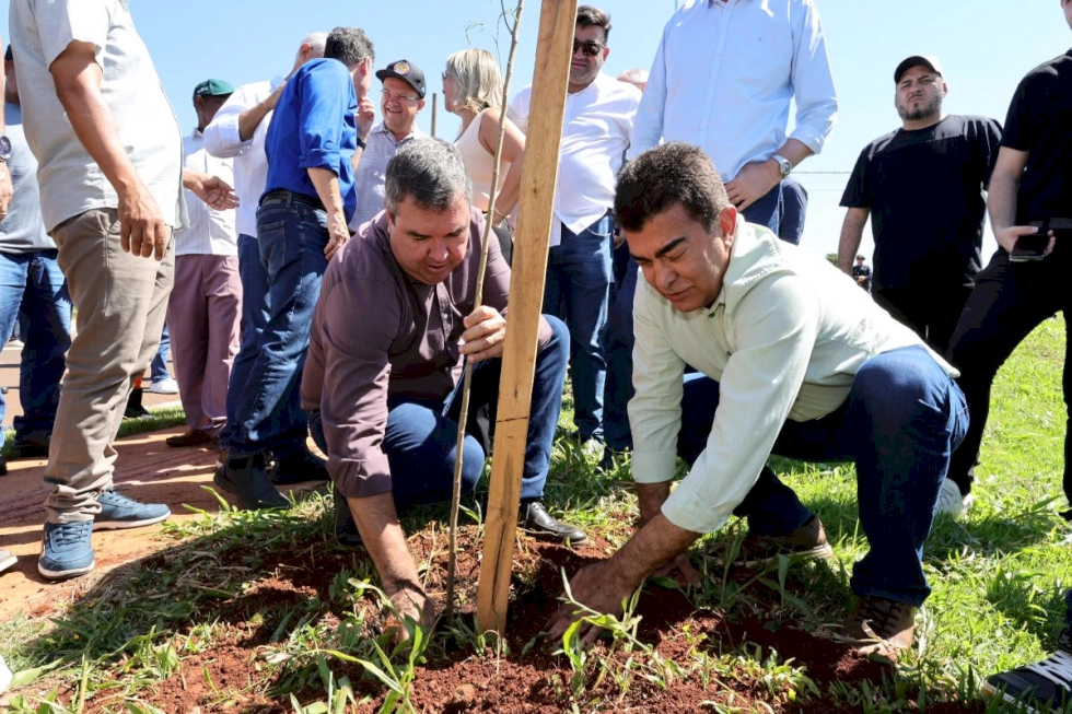 Após cortar a fita, descerrar a placa inaugurativa e remover os cones, liberando o tráfego de veículos no local, o prefeito Marçal Filho e o governador Eduardo Riedel, acompanhados pelo vice-governador José Carlos Barbosinha, deputada estadual Lia Nogueira, vereadores e demais autoridades, plantaram mudas de ipês rosa na Avenida Aziz Rasselen e o prefeito anunciou que toda extensão da nova Via Parque, que ele vai nominar de Avenida dos Ipês, receberá mudas da espécie e se tornará uma linda via florida para os douradenses.