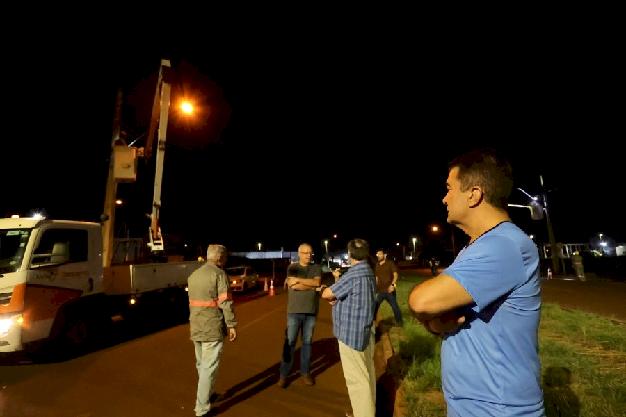 O prefeito Marçal Filho acompanhou de perto o início dos trabalhos, que começou por volta das 19h, e destacou o empenho das equipes de eletricistas da Prefeitura de Dourados durante o período em que o município ficou sem contrato, por pouco mais de 14 meses. “Nesse 1 ano e 2 meses a prefeitura recebeu cerca de 10.500 pedidos de manutenção em rede de iluminação pública e conseguiu atender pouco mais de 6.500 pedidos, substituindo lâmpadas de mercúrio por unidades de LED”, ressaltou Marçal Filho.