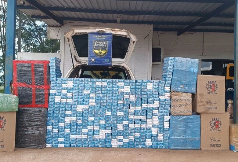 Durante vistoria no interior do automóvel, os policiais localizaram diversos produtos de origem estrangeira sem documentação fiscal, entre eles 650 pacotes de cigarros, perfumes, cigarros eletrônicos e carregadores de celular.