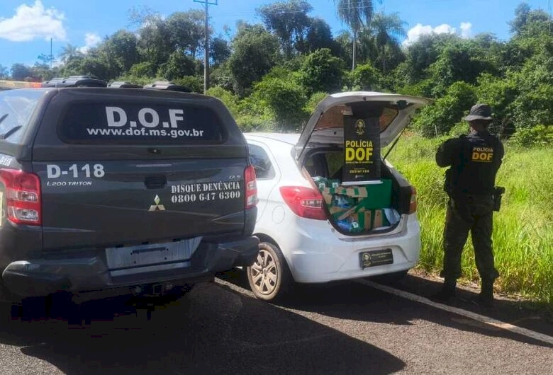 Policiais militares do DOF (Departamento de Operações de Fronteira) apreenderam, nesta segunda-feira (23), em Tacuru, 100 quilos de maconha e 22 quilos de skunk que eram transportados em um veículo Ford Ka. Na ação, um homem de 36 anos foi preso e uma adolescente, de 17 anos, apreendida.